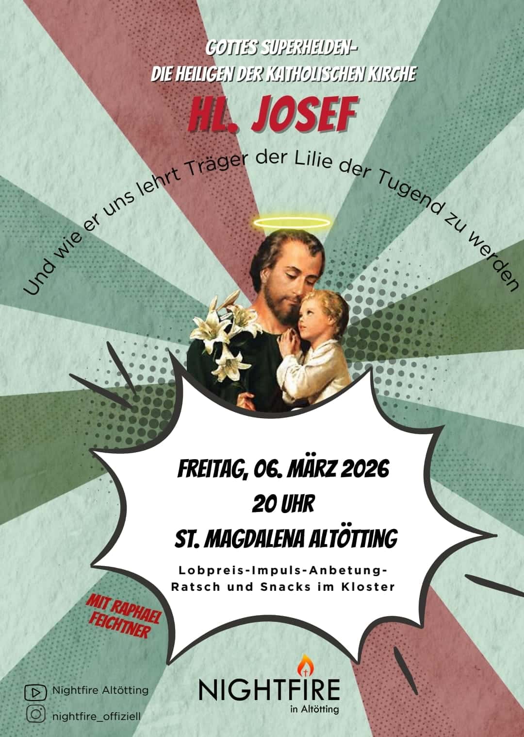 Veranstaltungen, Tipps, Ideen und coAktuellesNightfire AltöttingFreitag, 6. März 2026Rejoice in FreyungAm 22. MärzMissionskongress: Mission is possibleFahrt nach AugsburgGesungener KreuzwegIn der FastenzeitGebetswochen in St. Barbara 202630. März bis 5. April 2026Abende der Barmherzigkeit in der Fastenzeit 2026 im Bistum PassauAlle Termine10 Tage fastenOnline-ExerzitienOnline-Kathkursab 02. MärzAlpha im Januar 2026Altötting und Kirchweidach Weitere Beiträge Lebendiges BistumSuchen, finden, vernetzen Mit dem Laden der Karte akzeptieren Sie die Datenschutzerklärung von Google.Mehr erfahren Karte laden Google Maps immer entsperren gemeinsam betenAdoratio-KongressGlaube neu entdeckenAlpha24/7-ANBETUNGStarthilfeunterstützt werdenUnsere Materialienbeten für unser bistumGebetsinitiativenSakramente entdeckenBarmherzigkeitsabendinformiert bleibenNewsletterwas wir tunWeitere Projekte